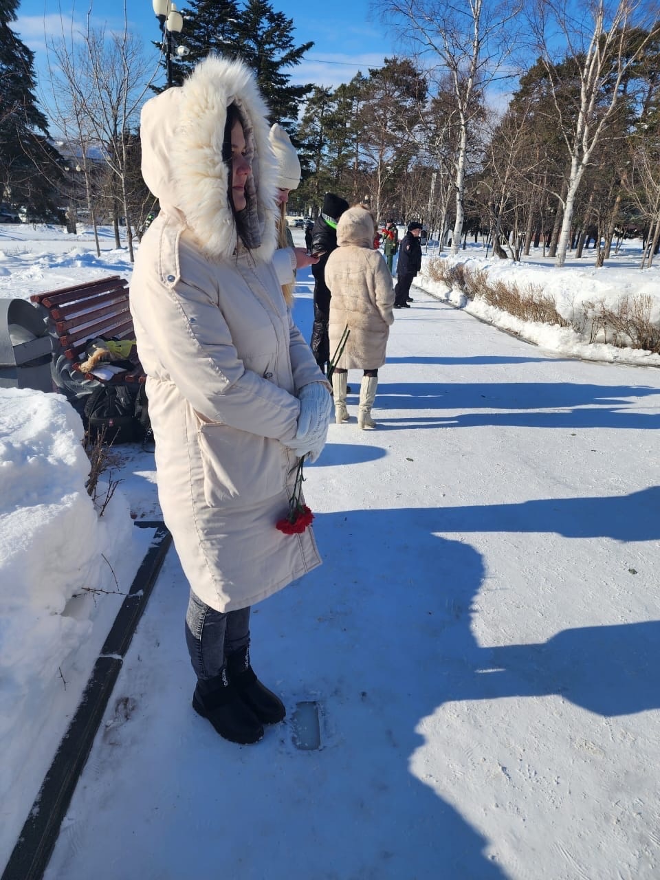 Заместитель координатора Сахалинского регионального отделения ЛДПР Анна Федоренко вместе с активистами возложили цветы к мемориалу на площади Славы в городе Южно-Сахалинске и почтили погибших минутой молчания.