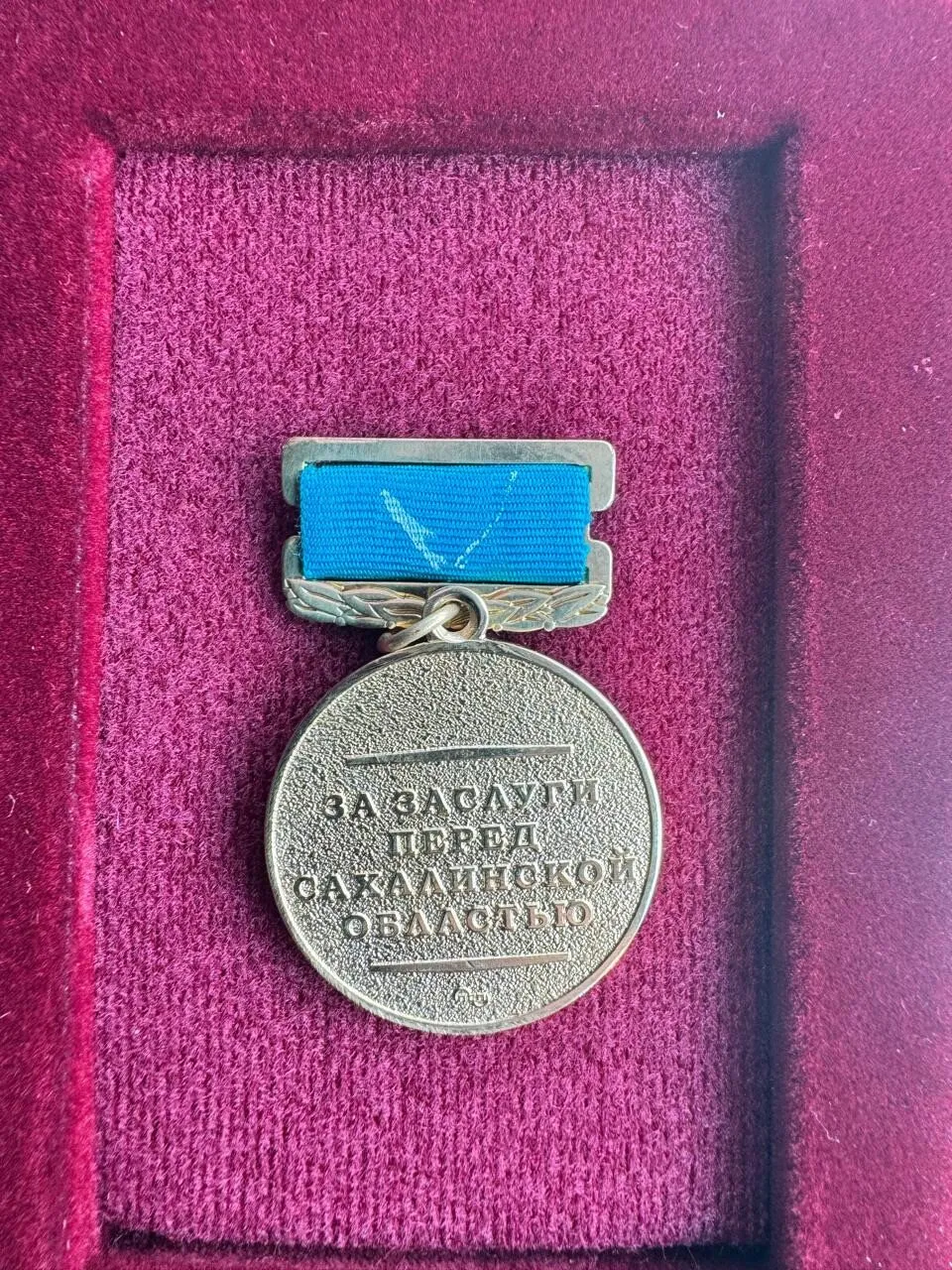 Депутат Сахалинской областной Думы от ЛДПР Виталий Баранов вручил почетную грамоту и медаль за заслуги перед Сахалинской областью начальнику управления уголовного розыска УМВД РФ по Сахалинской области Павлу Буданову