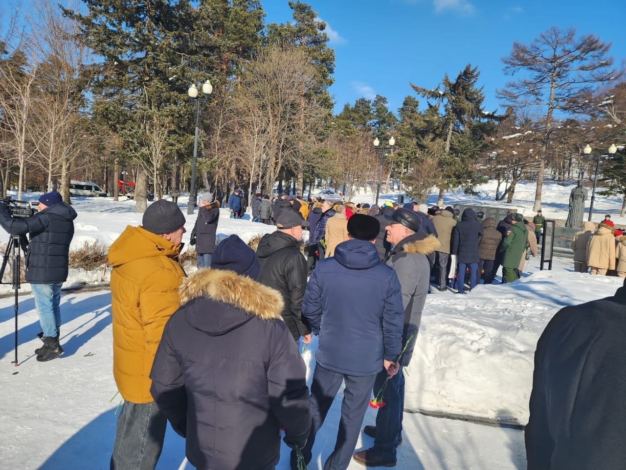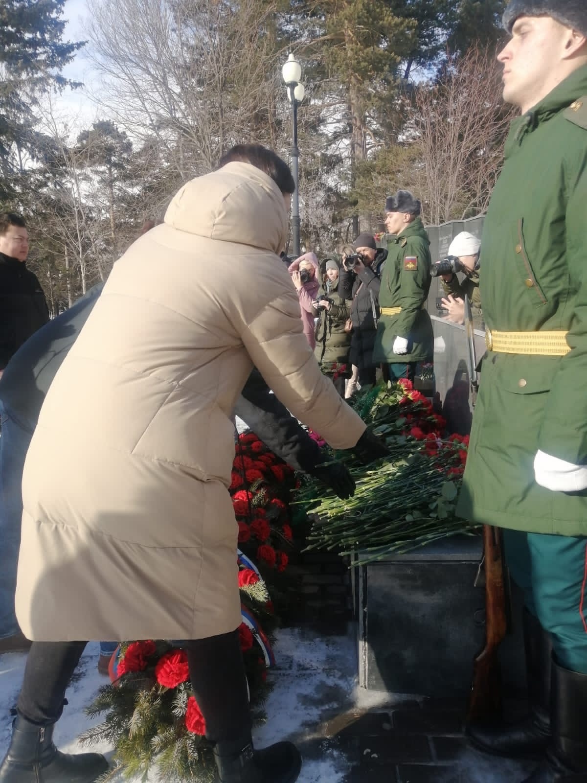 Заместитель координатора Сахалинского регионального отделения ЛДПР Анна Федоренко вместе с активистами возложили цветы к мемориалу на площади Славы в городе Южно-Сахалинске и почтили погибших минутой молчания.